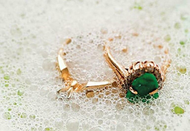 Если украшение из благородных металлов с камнями (и без камней) потеряло блеск, почистите его мягкой зубной щеткой и промойте в мыльной воде с добавлением 1 чайной ложки нашатырного спирта на 1/2 стакана воды. Затем сполосните изделие чистой теплой водой и протрите досуха фланелью. Позолоченные изделия рекомендуется промывается щеткой как можно реже. Жемчуг, бирюза, малахит и янтарь плохо переносит высокую влажность. Украшения с перечисленными камнями, закрепленными на клее, при большом загрязнении следует быстро промыть мыльным этиловым спиртом с водой (1:1); насухо вытереть фланелью, а остальные камни просушивать этиловым спиртом. Сильно загрязненные изделия следует отдавать для чистки в ювелирную мастерскую.